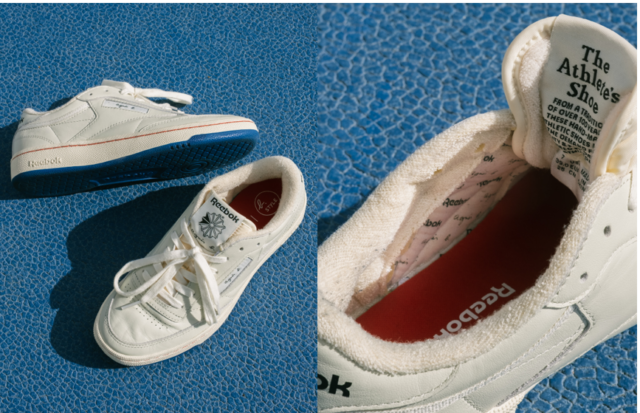現在もストリートシーンの定番スニーカーとして愛されるリーボックのクラブ C。そのオリジナルはクラブチャンピオンの名前で1985年にリリースされたテニスシューズである。足なじみのよい上質な天然皮革のアッパーに、耐久性と安定性に優れた3/4カップアウトソール構造、様々なサーフェスに対応したダイヤモンドアウトソールパターンを組み合わせ、その洗練されたシンプルなデザインもあって、特に会員制テニスクラブに所属するプレーヤーから高い人気を誇った。のちにクレーコートに特化した変形ヘリンボーンアウトソールを装備してクラブプレーヤーと改名したこともあったが「ダイヤモンドパターンのアウトソールのほうがいい!」という声が、ユーザー、小売店から多く寄せられたことから、そのスペックでの展開はかなりの短期間だった。ちなみに細部のデザインをフェミニンにアレンジした女性用モデルは、クラブクラシックとネーミングされ、メンズモデルとともに1980年代後期から1990年代初期にかけて大ヒット。日本では男性用のクラブチャンピオン、女性用のクラブクラシックの両方とも、月に1万足を超える量を輸入しても需要を満たすことができない時期もあり、この当時最も販売量の多いコートスポーツ(テニス、バスケットボールetc.)シューズのひとつに君臨していた。そのクリーンで高級感のあるデザインは、デニムのようなカジュアルテイストのボトムだけでなく、プレスのきいたドレッシーなトラウザースにもマッチしたことから、アメリカでは都市部はもちろんのこと、ニューイングランド地方のナンタケット、マーサズヴィニヤードのような高級リゾート地に別荘を有する人々の足元をも飾っていたという。2025年、クラブ Cは、そのデビューから40周年という記念すべき年を迎えたが、現在でも古さを全く感じない。クラブ Cのシンプルかつベーシックなデザインは、クリエイター、デザイナーの格好のキャンバスになっている。