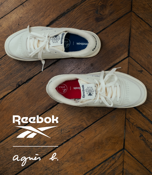 ベースモデルは、1985年にテニスシューズとして誕生したクラブ C。コートでもストリートでも愛されたリーボックの名作に、アニエスベーの洗練されたパリのエスプリを融合し、日常に溶け込むタイムレスなエレガンスが表現された一足。アッパーの素材には、ヴィンテージ感のあるフルグレインレザーを使用し、ベースのチョークカラーは、リーボックのアイコニックなクラブ Cの色味を採用。デザインポイントにアニエスベーの手書きロゴ、トリコロールのアクセントを組み合わせ、季節を問わず、時代を超えて愛されるスニーカーに仕上げられている。36,300円