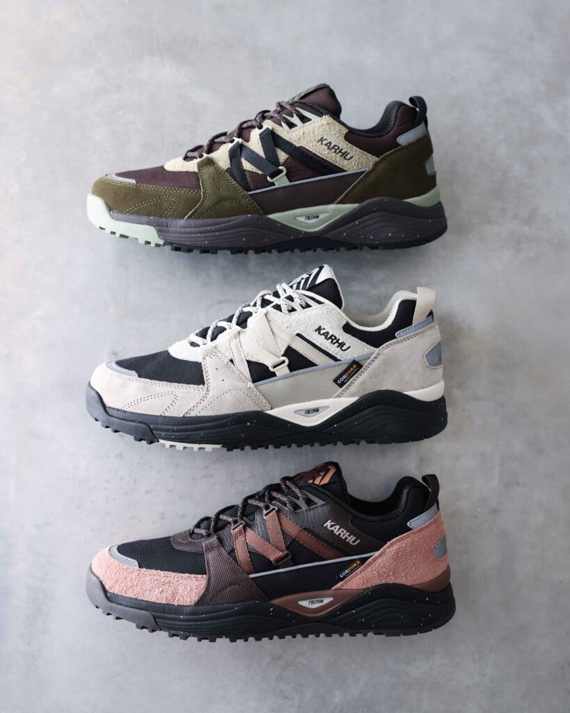 1916年にフィンランドで誕生したスポーツブランド、カルフ。エアクッション ミッドソールをいち早く開発したことでも知られる老舗ブランドは、ランニングシーン、ファッションシーンでコアなファンを獲得、注目を集めている。足元に個性を持たせてくれる存在だ。そのカルフのラインナップの中でも高い人気を誇っているフュージョン XC。いくつかの過去モデルからインスピレーションを得てデザインされたモデルで、特に1996年のフュージョン APを想起させるテープ使いのMロゴが特徴的。ユニークでレトロな美しさと、カルフのアウトドアの遺産を受け継いでいる。テコの原理を活用し、着地衝撃を前方への推進力へと変換する独自のテクノロジー、フルクラムを搭載。エアクッションミッドソールが採用され、Tプロファイルアウトソールが濡れたコンディションでも高いグリップを発揮する。