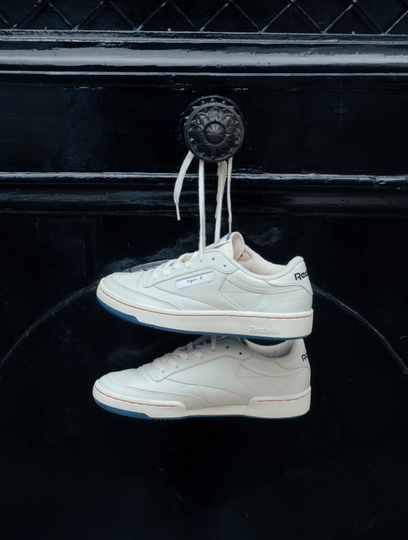 現在もストリートシーンの定番スニーカーとして愛されるリーボックのクラブ C。そのオリジナルはクラブチャンピオンの名前で1985年にリリースされたテニスシューズである。足なじみのよい上質な天然皮革のアッパーに、耐久性と安定性に優れた3/4カップアウトソール構造、様々なサーフェスに対応したダイヤモンドアウトソールパターンを組み合わせ、その洗練されたシンプルなデザインもあって、特に会員制テニスクラブに所属するプレーヤーから高い人気を誇った。のちにクレーコートに特化した変形ヘリンボーンアウトソールを装備してクラブプレーヤーと改名したこともあったが「ダイヤモンドパターンのアウトソールのほうがいい!」という声が、ユーザー、小売店から多く寄せられたことから、そのスペックでの展開はかなりの短期間だった。ちなみに細部のデザインをフェミニンにアレンジした女性用モデルは、クラブクラシックとネーミングされ、メンズモデルとともに1980年代後期から1990年代初期にかけて大ヒット。日本では男性用のクラブチャンピオン、女性用のクラブクラシックの両方とも、月に1万足を超える量を輸入しても需要を満たすことができない時期もあり、この当時最も販売量の多いコートスポーツ(テニス、バスケットボールetc.)シューズのひとつに君臨していた。そのクリーンで高級感のあるデザインは、デニムのようなカジュアルテイストのボトムだけでなく、プレスのきいたドレッシーなトラウザースにもマッチしたことから、アメリカでは都市部はもちろんのこと、ニューイングランド地方のナンタケット、マーサズヴィニヤードのような高級リゾート地に別荘を有する人々の足元をも飾っていたという。2025年、クラブ Cは、そのデビューから40周年という記念すべき年を迎えたが、現在でも古さを全く感じない。クラブ Cのシンプルかつベーシックなデザインは、クリエイター、デザイナーの格好のキャンバスになっている。