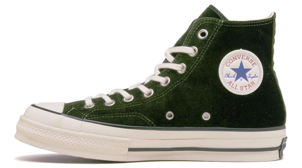 コンバースのアーカイブへの敬意を込めたディテールと快適な履き心地が融合した新たなフラッグシップモデルのオールスター LGCY。単なるヴィンテージの再現ではなく、現代のライフスタイルにフィットするモデルとして提案しているオールスター LGCYは、靴底面にクッション性に優れたPUシートを使用し、その上にクッション性・通気性に優れるOrtholite®、さらに反発性に優れへたりにくいスポンジラバーを組み合わせている。また、シューズ内部には、多重構造のインソールを採用することで快適な履き心地を実現。本コラボレーションモデルは、アッパーに深みのあるグリーンのベルベットを採用。クラシックなシルエットにラグジュアリーな素材感を融合させることで、上質さと遊び心を兼ね備えたビリーズらしい仕上がりになっている。15,400円 只今好評発売中。