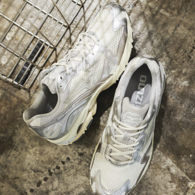 ウエーブライダー10です。ミズノウエーブを搭載し、程よいボリューム感があるため、トレンド感のあるスポーツカジュアルに取り入れやすい一足です。ミズノのランニングシューズの原点であり、同時にブランドの象徴でもあります。中でもオフホワイト系は、男女問わずコーディネートに合わせやすくお勧めです。2足目としてウエーブプロフェシーLSを選んでいただければ、今のミズノスポーツスタイルの魅力は、ほぼ感じられるのではないかと思います。