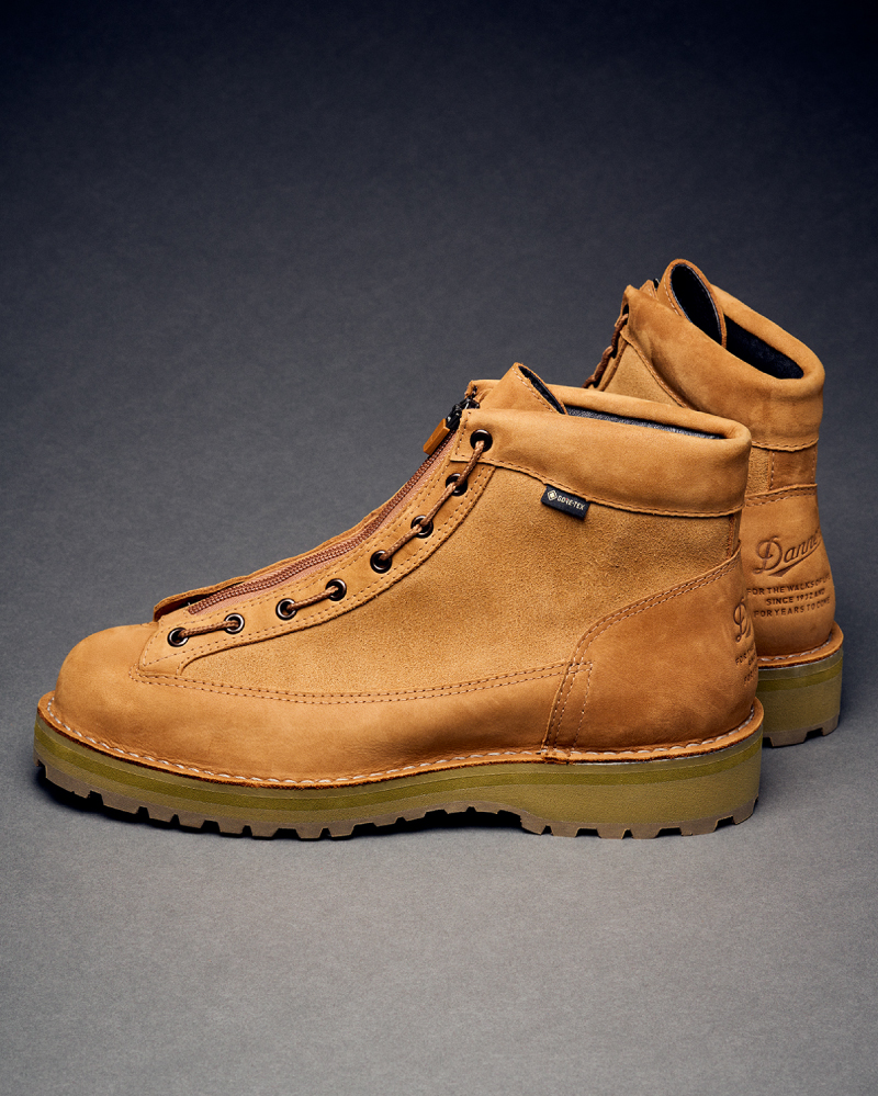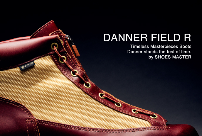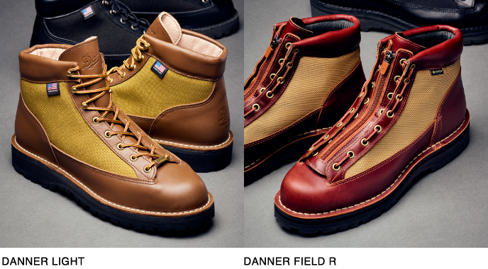 ダナーの代表作のひとつであるダナー フィールドを、より現代のライフスタイルにマッチするように昇華したダナー フィールド R。その意匠は、世界で初めてゴアテックスを採用したブーツとして注目を集めたダナー ライトに遡り、そこからインスパイアを受けたアッパーデザインやディテール、奥行きを感じさせるヴィンテージ感のある防水レザーなど、素材にこだわり抜いた新しいシューズとして登場。今作では「温故知新」をテーマに掲げ、モデル名の“R”には、Reborn(生まれ変わる)、Revolution(革命)、Revival(復刻/復活)など複数の意味が込められている。なお、ダナー フィールドRのセンタージップパーツは、取り外してシューレース仕様に変更することもできる。