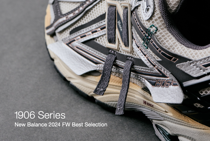 2009年にハイパフォーマンスランニングシューズとしてリリースされた1906を再構築したデザインの1906 ユーティリティのニューカラーが登場。天然レザーをアクセントにしたシンセティックレザーとメッシュのコンビネーションアッパーに、自然に学ぶものづくりを指すネイチャー・テクノロジーをモチーフとしたカラーがパーツごとに配置されている。