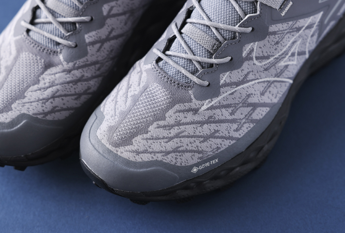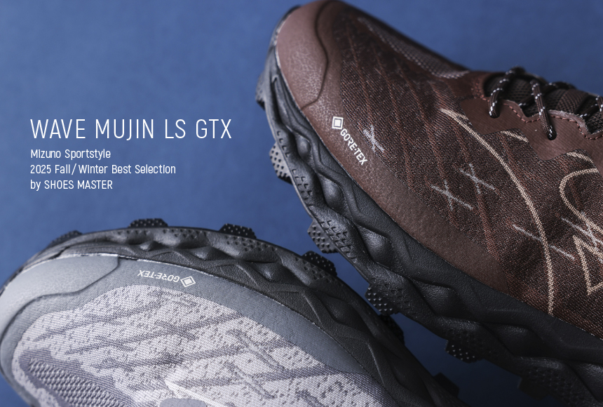 トレイルランニングシューズのウエーブムジン10にゴアテックスを搭載し、カジュアルに仕上げたウエーブムジンLS GTX。ジャガードメッシュのアッパーにヴィブラムメガグリップのアウトソールを載せ、さらに、ミズノエナジーとミズノウエーブを搭載することで、優れたクッション性と反発性、安定性を提供し、快適な履き心地を実現。アッパーには随所に10周年を記念したXの意匠を施し、その歴史と伝統をさりげなく主張する。