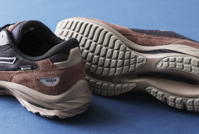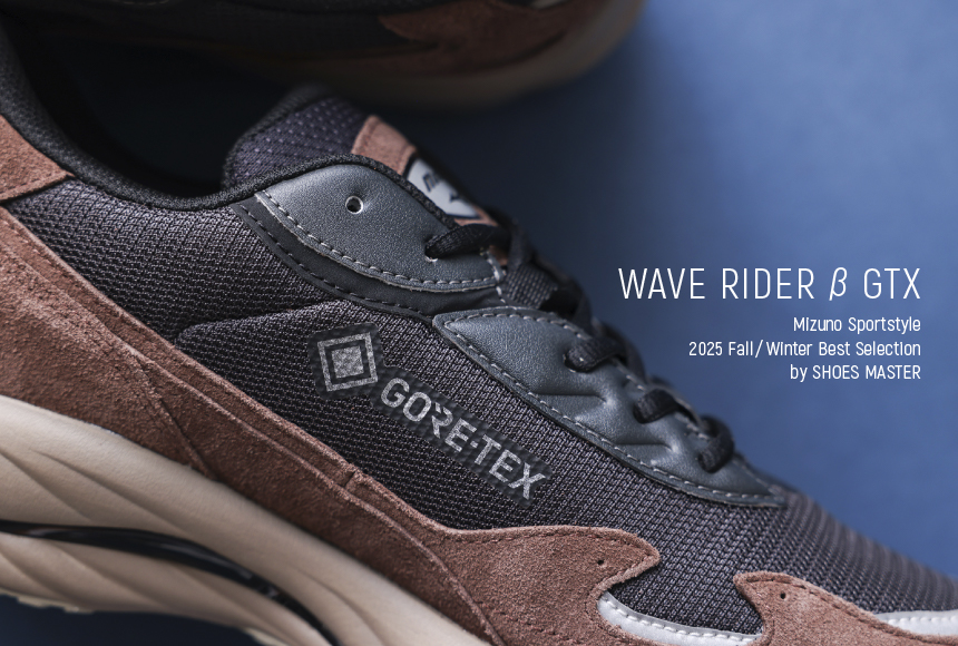 ミズノランニングを25年以上に渡ってけん引するウエーブライダーシリーズの中でも、クッションや反発、安定性、走り心地と、ランニングに必要な機能的価値を高めるために開発され、名作となった26代目のソールに、アーカイブから着想を得て作り上げたモダンなアッパーデザインを搭載するウエーブライダーベータ。今作は、ゴアテックスを採用することで最高クラスの防水性と高い透湿性を確保。より快適に、よりスタイリッシュに日常を彩る一足が完成。