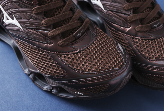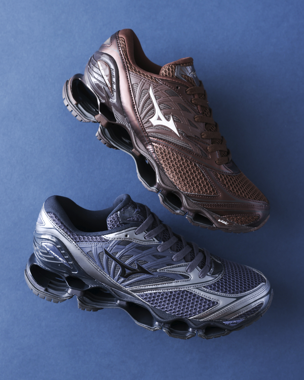 1990年代後半から2000年代前半にかけてのノスタルジックな思いや、当時のトレンドからインスピレーションを得てデザインされたウエーブプロフェシーLS。目の大きいメッシュにメタリックなパーツをダイナミックに組み合わせ、Y2Kスタイルのエッセンスを現代的な解釈で包み込み、巧みに昇華。ミズノスポーツスタイルの象徴的なモデルをミニマルで洗練された意匠によってモダンな印象にしつつ、日常履きのスニーカーとして最高のパフォーマンスを発揮するよう仕上げている。