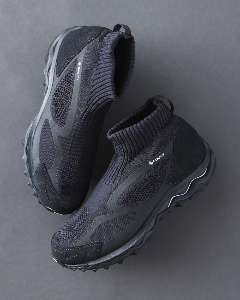 2023年春のビンテージカーキからはじまり、ブラック、ベージュ、オフホワイトと続いてきたノンネイティブとのコラボレーション。今期は、過去のカラーの中でも人気が高かった第2弾のブラックを再販売。前作同様、“ミッドカットのブーツシルエットに、靴ひものないゴアテックスを使用したシューズ”というコンセプトはそのままに、優れた防水透湿性能や着脱の容易さ、履き心地などの機能性とデザイン性を見事に融合。独特の存在感を放つ。