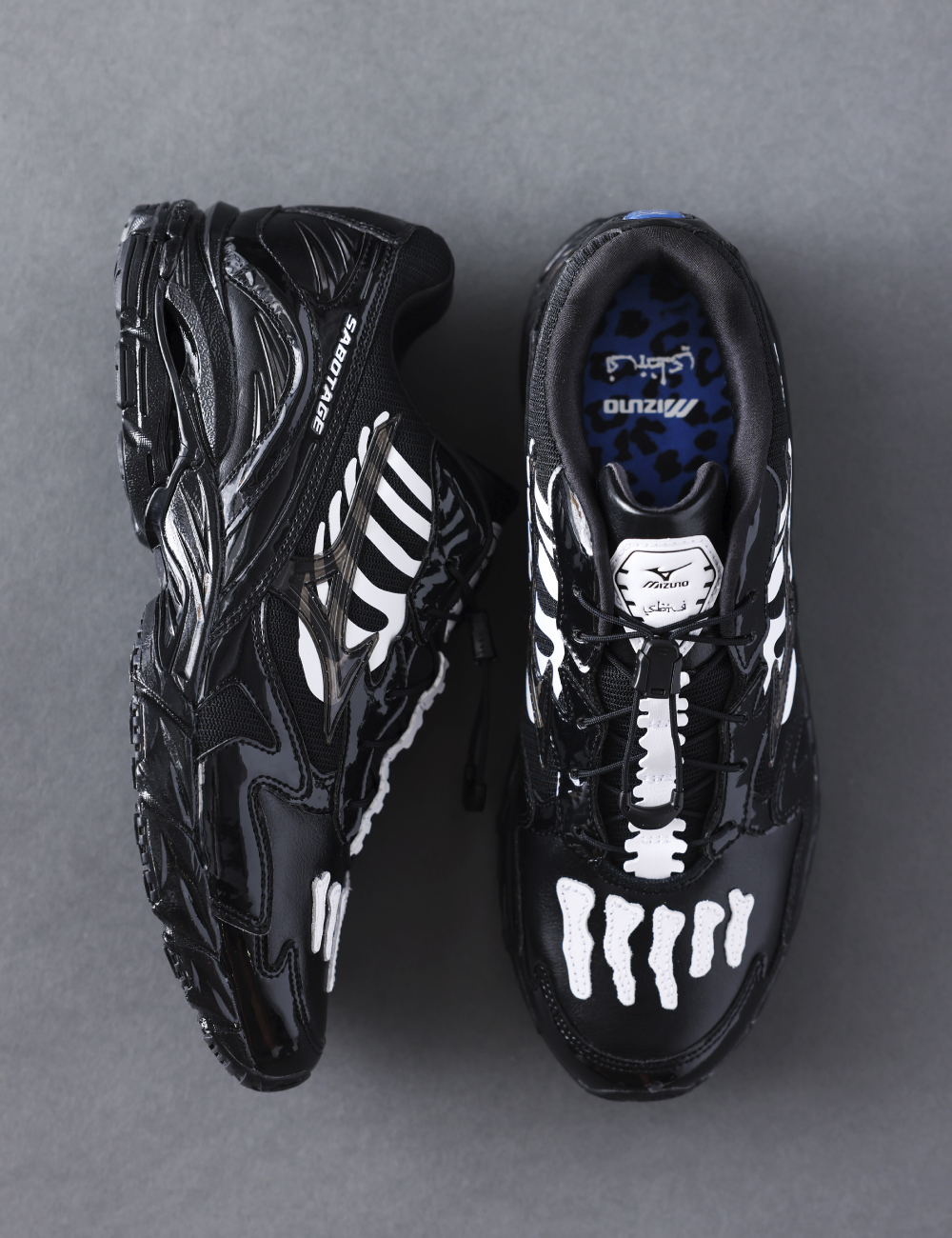 シンガポールのサボタージュ(SBTG)とのコラボレーションは、1980年代後半から1990年代初頭のパンクやスケートカルチャーから影響を受けたサボタージュの「骨」デザインを大胆にあしらい、反骨精神と創造性のエッセンスを表現。パンクの美学が持つ混沌としたエネルギーと、スニーカーの滑らかでパフォーマンス志向のデザインを組み合わせることで、コラボレーションならではの化学反応を生み出している。伝統を忠実に守りながらも常識に挑戦する、そんな気概のある一足が誕生した。