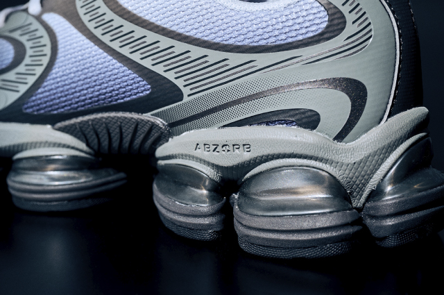 アブゾーブ 2000は、2000年代のランニングスタイルにインスパイアされたモデルで、未来的なデザイン、ミニマルなアッパー、革新的なテクノロジーの融合が特徴となっている一足。デザインプロセスでは3Dツールを活用し、精密なソールユニットを作成。美しいカーブが実現されている。アブソーブフォームとセグメント化されたアブソーブ SBSゲルポッドの組み合わせが象徴的。