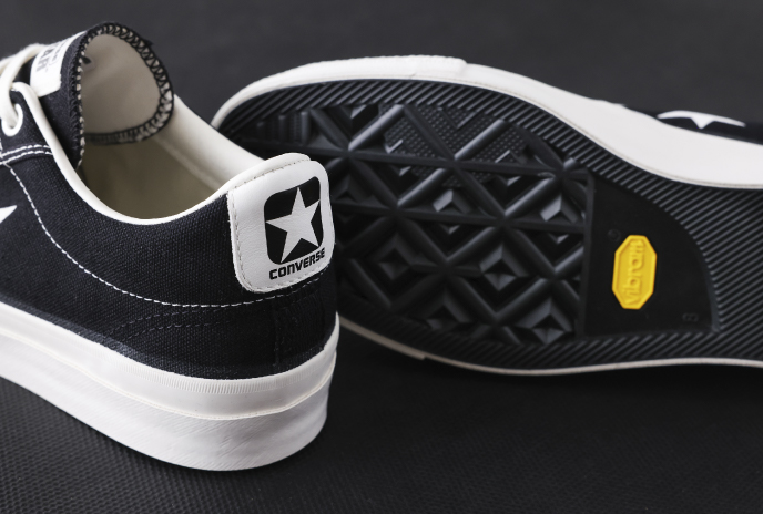 コンバース アディクト名義でついにシェブロン&スターの銘品、オールスター Ⅱが初登場。アッパーに国産シャトル織り機で紡いだキャンバスを使用し、ディテールでは、フロッキープリントのロゴマーク、サイドステッチ部分の当て布、インソールプリントなどを再現。機能面では、E.V.A.と高機能ウレタンフォーム、ポロンの2重構造でTPUシャンクを搭載したカップインソールやアウトソールに防滑性と耐摩耗性に優れた全天候型のヴィブラム メガグリップを採用するなど、ハイスペックな機能で快適な履き心地を提供してくれる。