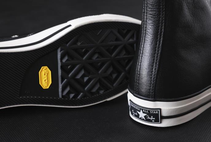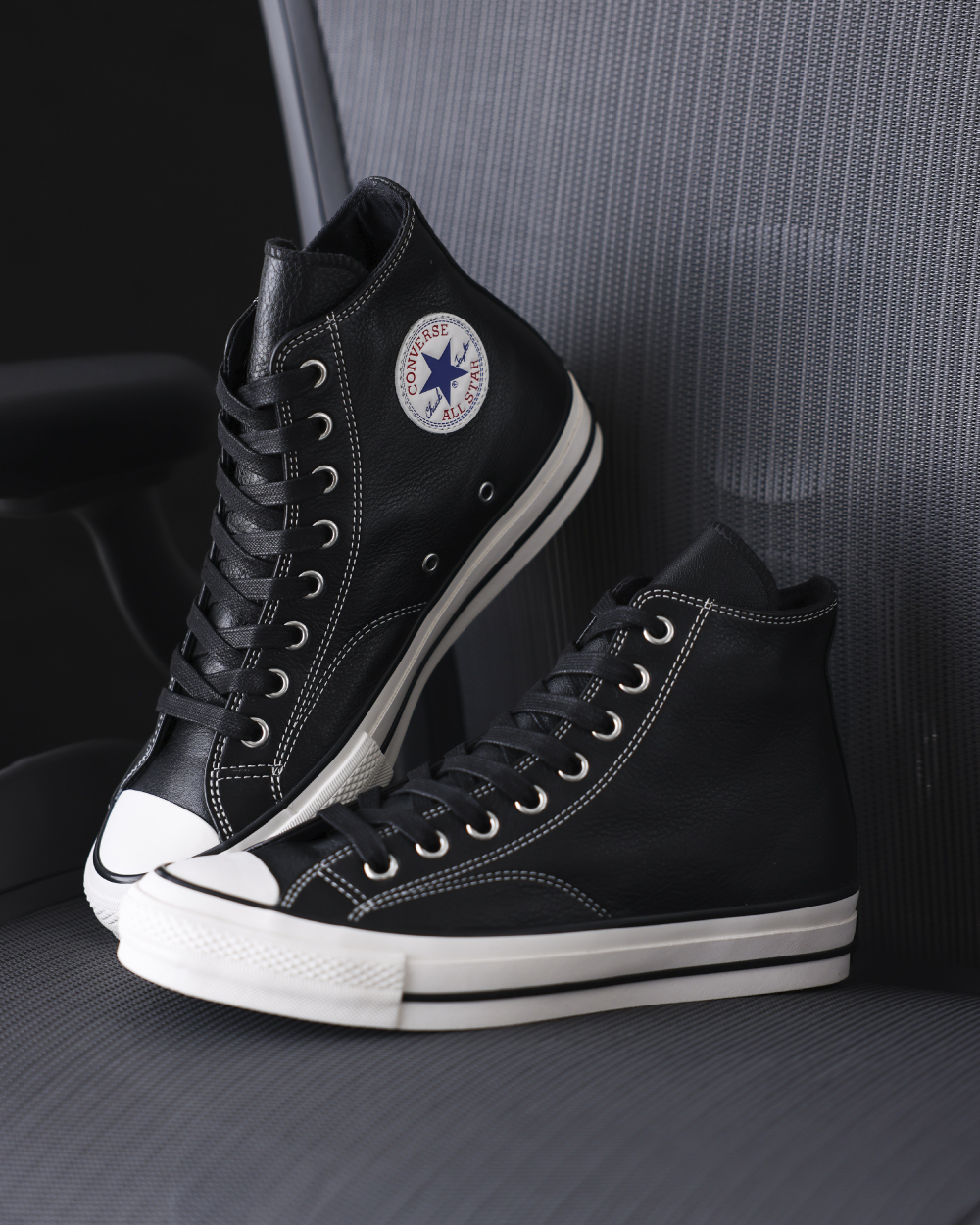 最後は、アッパーにエコーレザー社のレザーを贅沢に使用したチャックテイラー レザー HI。エコーレザー社のレザーは、デンマーク発のシューズブランド、エコーが自社で開発·製造し、世界の名立たる高級ブランドがこぞって使用するレザーの最高級ブランド。伝統的な技術と最先端テクノロジーを融合させた革づくりで、世界でもっとも優れたレザーだと評される高品質プレミアムレザーに、コンバース アディクトのハイスペックな機能を搭載した珠玉の一足が完成した。